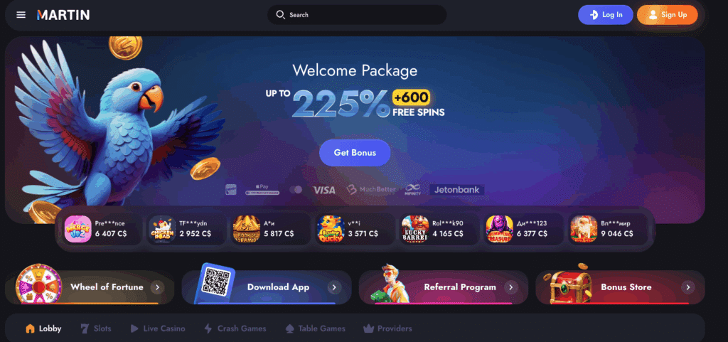 Martin Casino offers several payment options, including Jetonbank, MuchBetter, and Interac. Players who understand French can also switch the website to French.