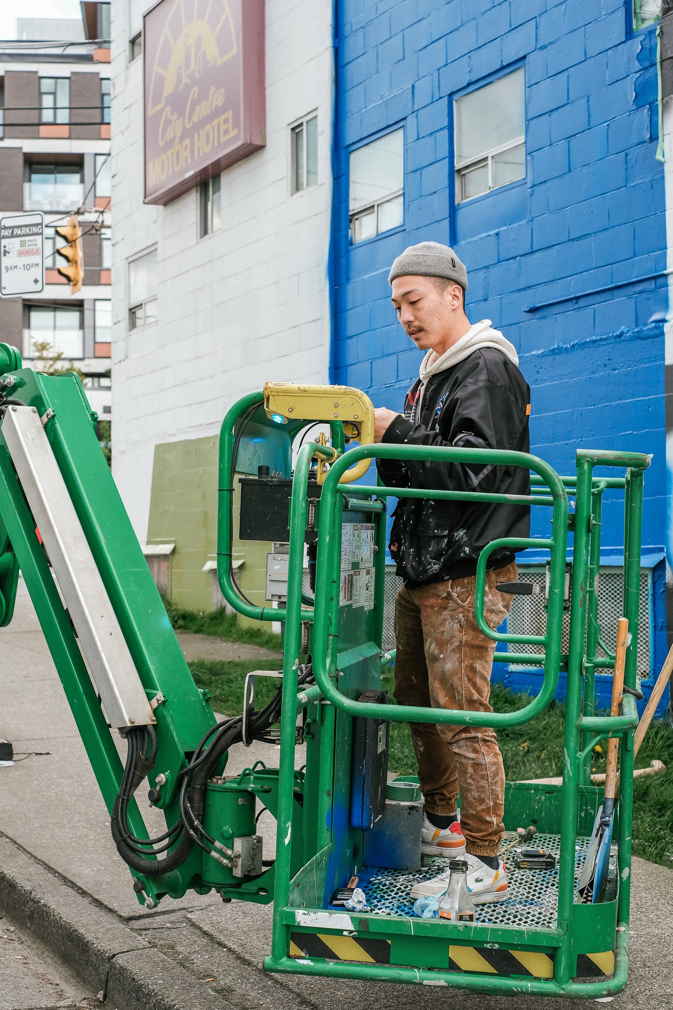VMF’s largest mural to-date is currently underway at City Centre Artist Lodge, Vancouver’s newest dynamic creative space at Main and 6th.