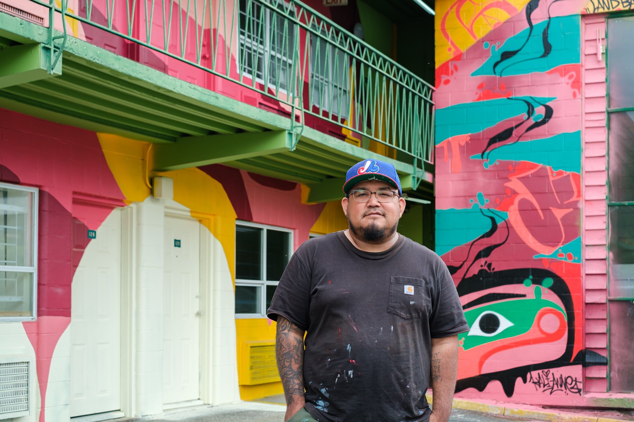 KC has worked on several other murals with VMF showcasing his unique style blending graffiti with traditional formline and objects of the Northwest Coastal First Peoples.