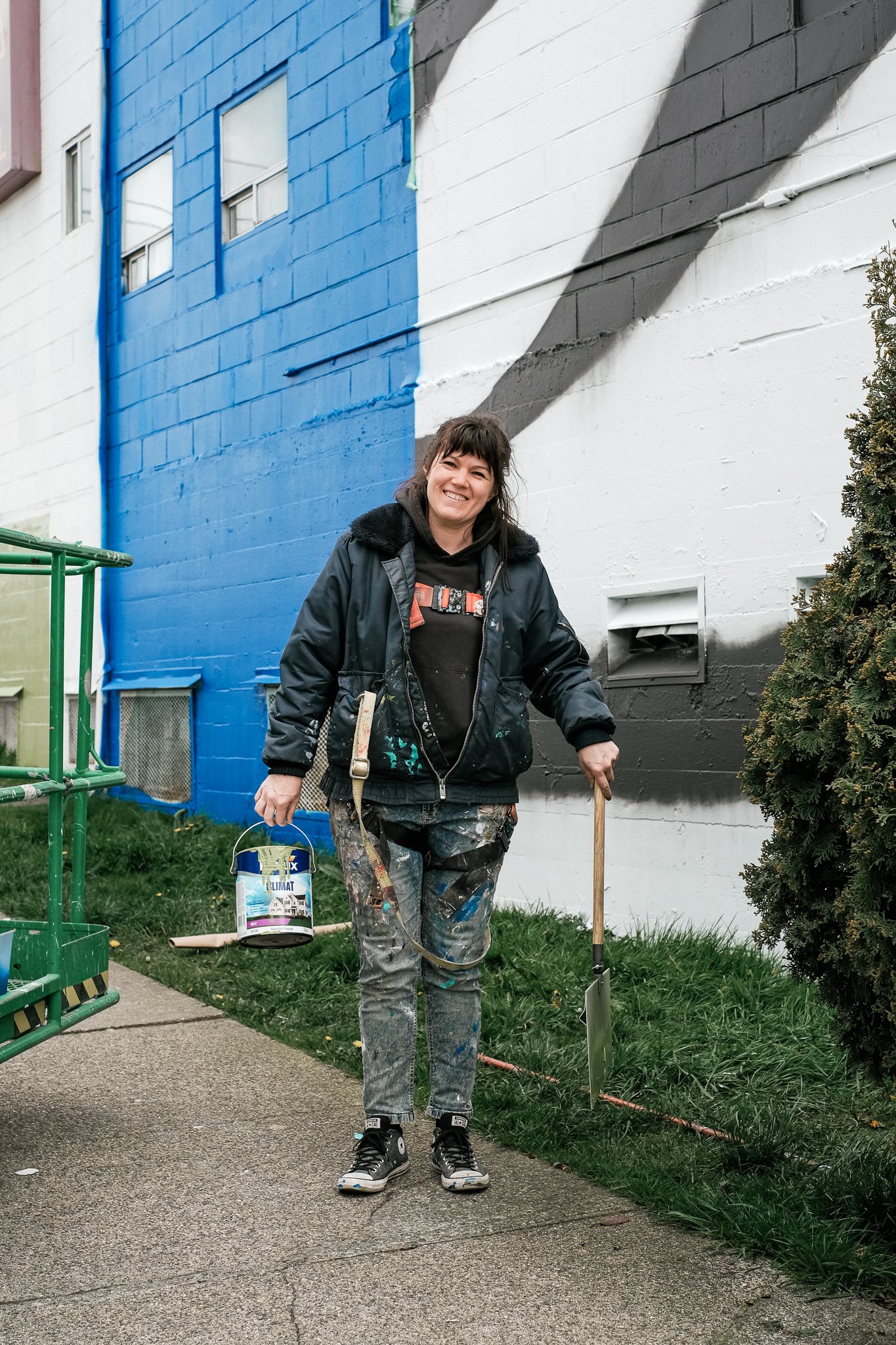 The mural at City Centre marks Fiona’s fifth mural project in Vancouver, but it’s wholly unique in both scale and scope. This is not only Fiona’s largest mural to-date, but her first collaborative painting project as well.
