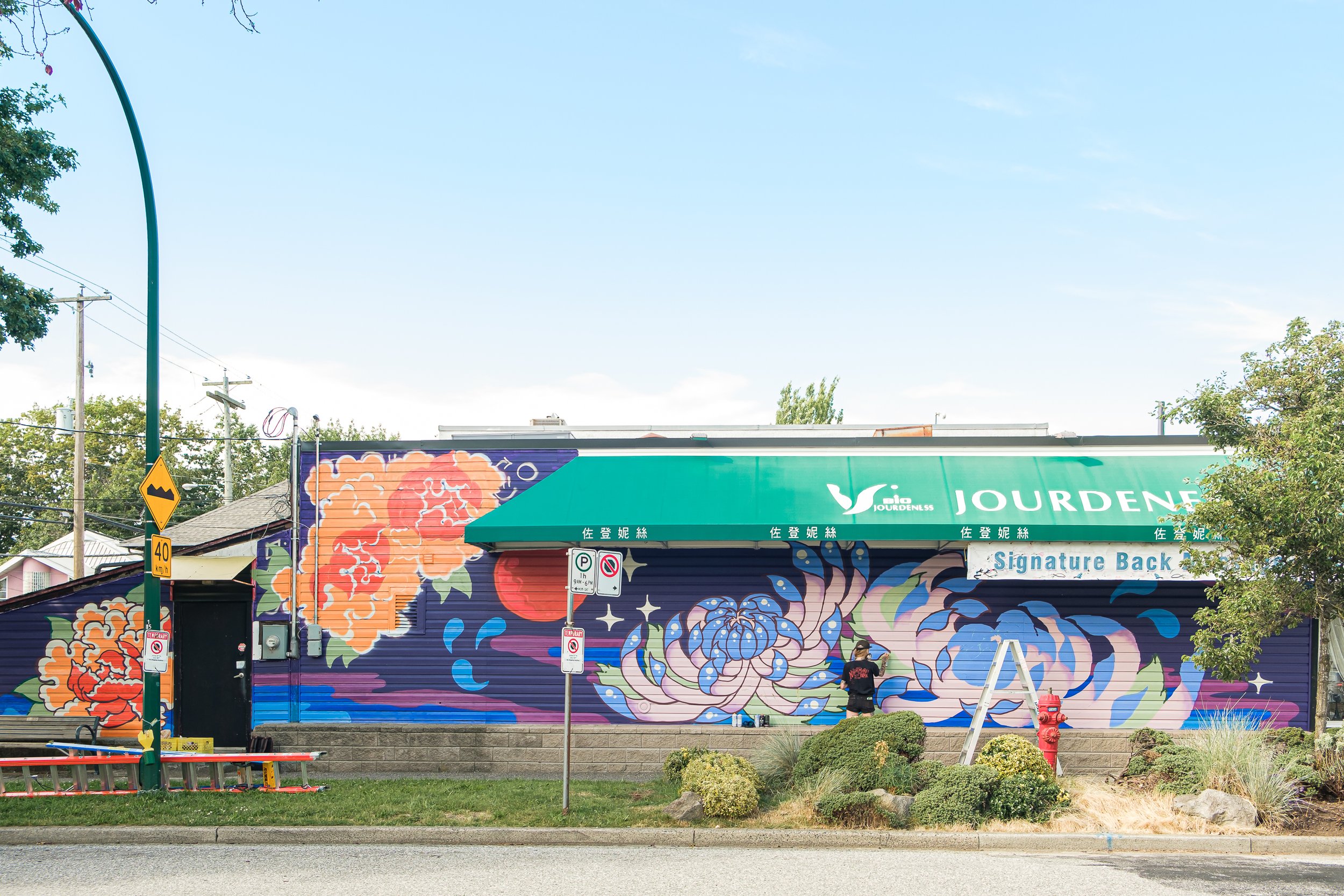 While you’re in Marpole, be sure to find some of the beautiful VMF murals from previous years of the festival, including the Instagram favourite “Love All Your Neighbours” by Jocelyn Wong at 8337 Granville Street.
