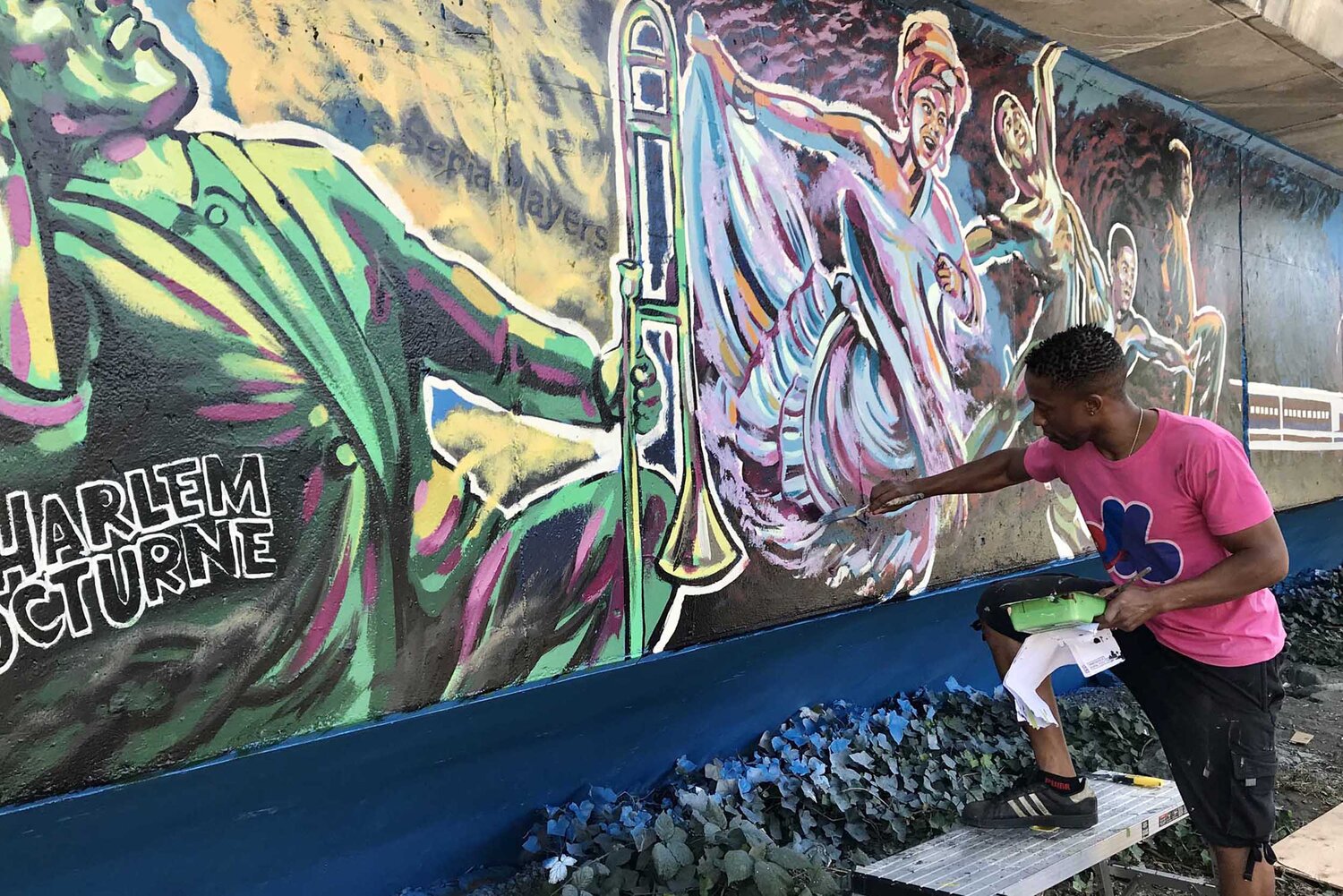 While the majority of mural artists are Black, BSRP seeks to support intercultural relations, and the murals have been curated with this intersectional lens. The community has historically shared space with Strathcona and Chinatown on the unceded territory of the Musqueam, Squamish and Tsleil Waututh people. Building solidarity between marginalized Black and Indigenous communities is the future of our city and will ensure that reconciliation is supported beyond movements like Black Lives Matter and Land Back. Similarly, BSRP seeks to collaborate with and honour Chinatown’s Chinese community with which Hogan’s Alley shares geographic space. To celebrate this, a mural collaboration between an artist representing each aforementioned community is being produced on the South wall of the BC Hydro Murrin Substation building on Main Street & Union Street– the intersection of Hogan’s Alley & Chinatown.
