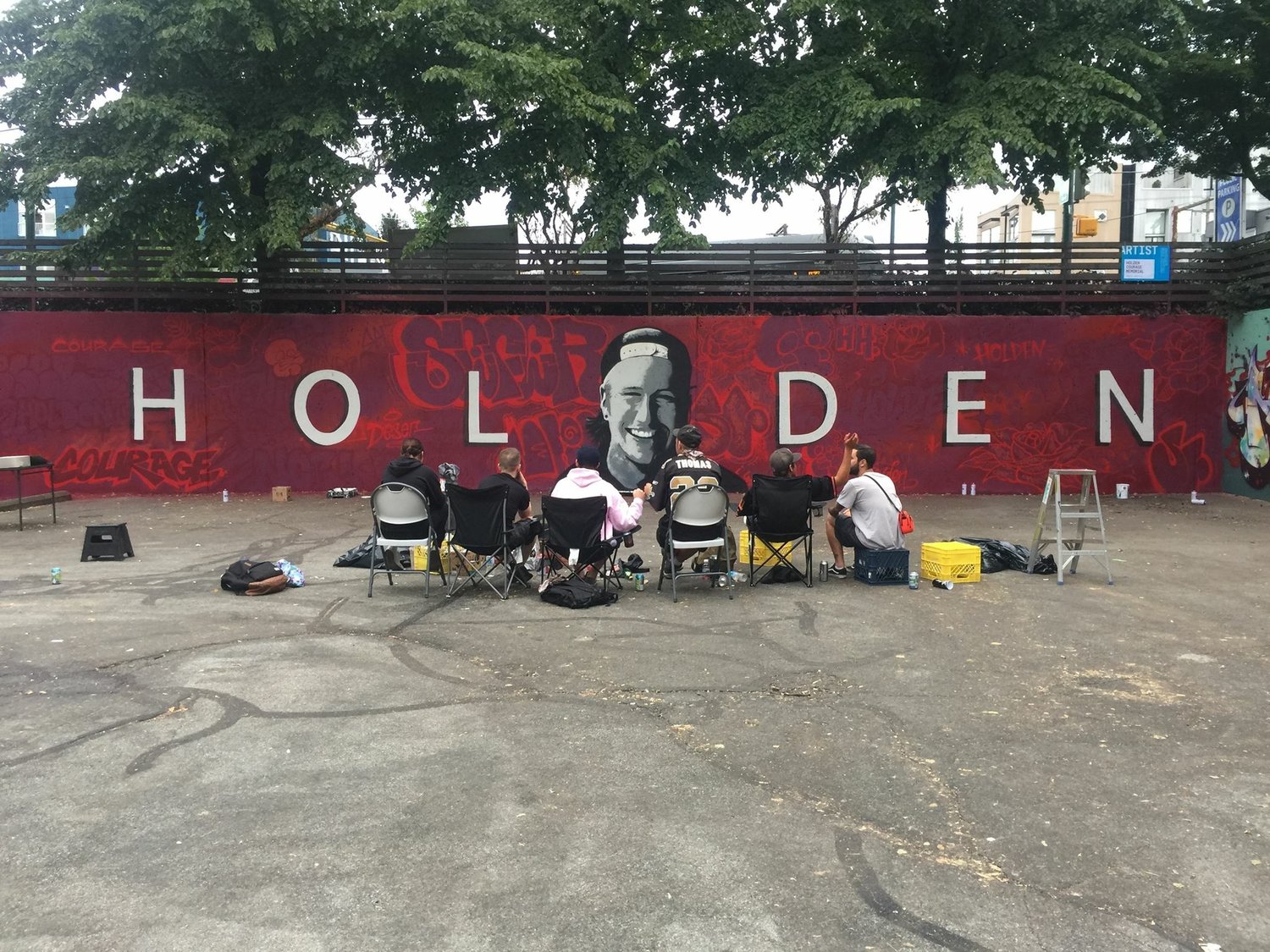 ** If you would like to see the memorial wall, it is at East 5th Avenue and Main, on the NW corner, in the parking lot. All contributions to The Holden Courage Memorial Fund for Artists are gratefully accepted. We have a few photo books of Holden’s graffiti work left. If you would like one, please let me know and I will get one to you. We ask for a minimum $20 donation. We are hoping that we can support other talented artists in creating more beauty on the walls of Vancouver. Because what made Holden truly happy was putting paint on walls. Thank you!**