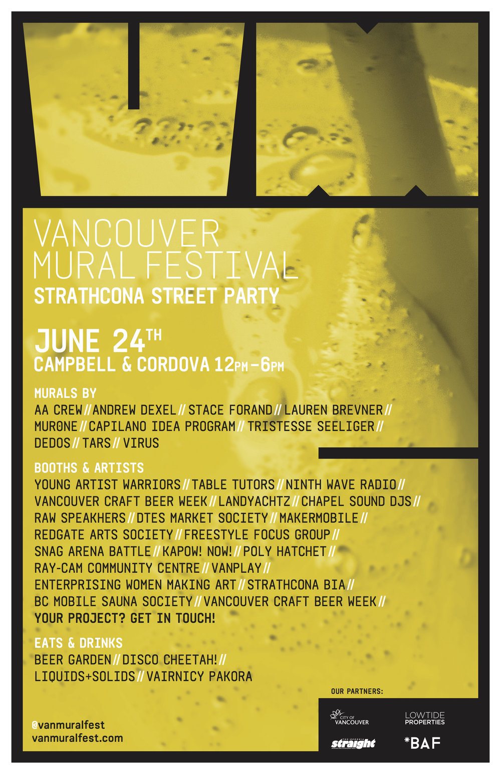 OUR SPONSORS: City of Vancouver, Lowtide Properties, Burrard Arts Foundation, Georgia Straight, Daily Hive.