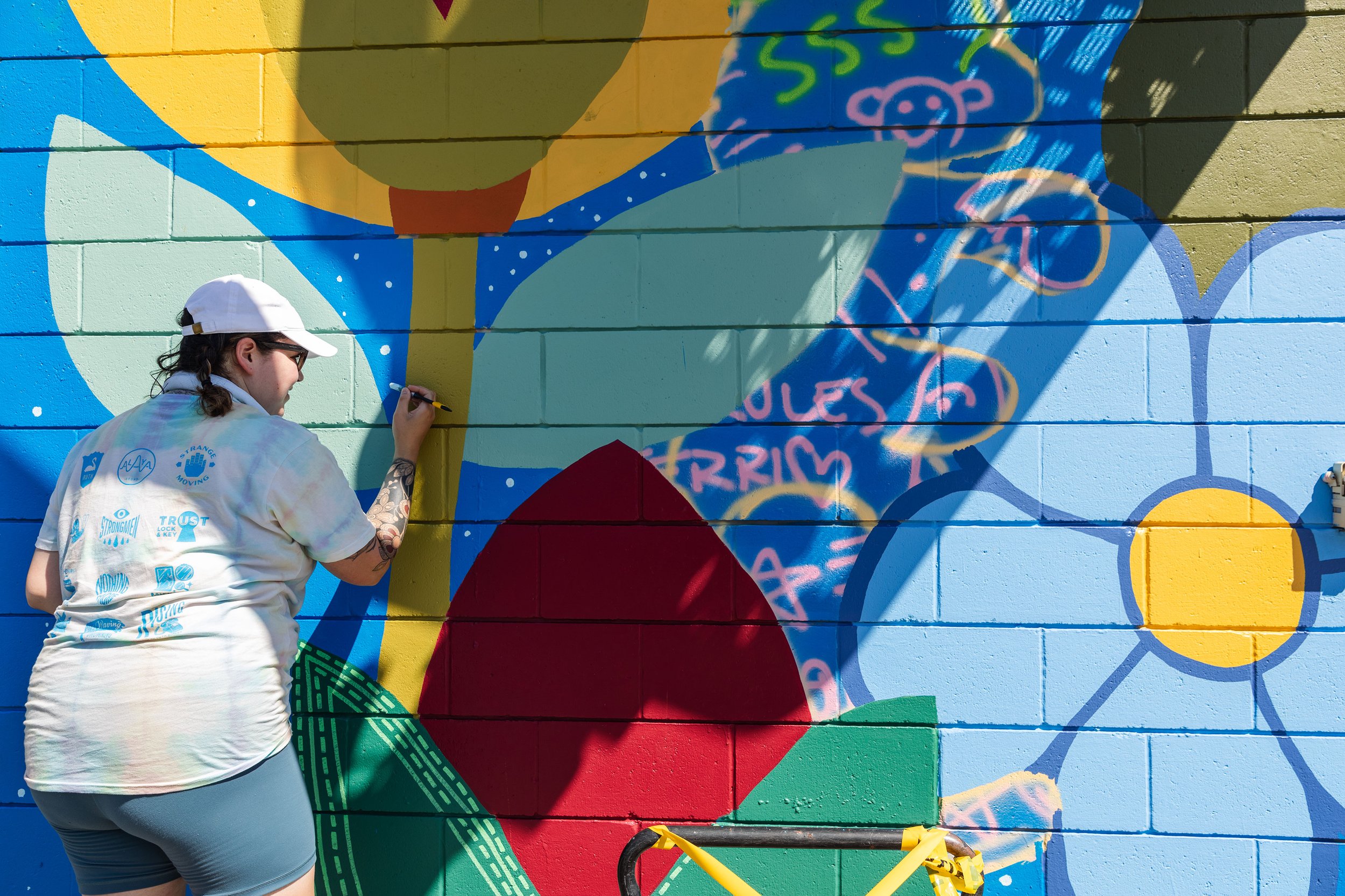 Titled “My Journey Home”, this mural was created by multimedia artist Melanie Jewell, who flew directly from the Northwest Territories to work on this important piece. The mural is a homage to Melanie’s mom, Jeannie Marie-Jewell, and her late grandmother, Sophie Marie. It is also dedicated to the aurora borealis and its connection with the people of the North. The 1,000 square foot piece was included as part of Vancouver Mural Festival 2022.